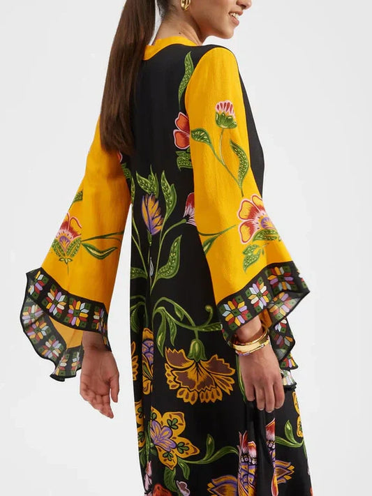Exquisite Sunshine Floral Print Flowing Maxi Dress